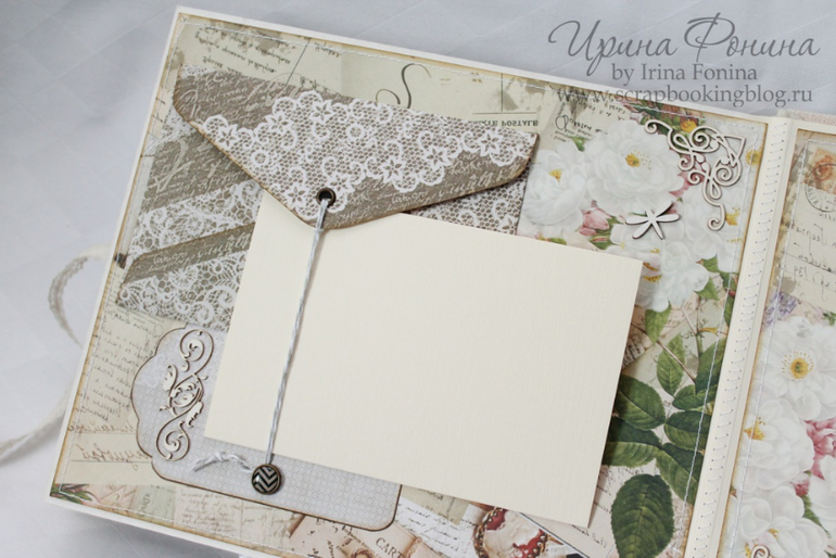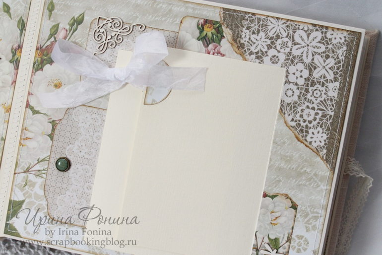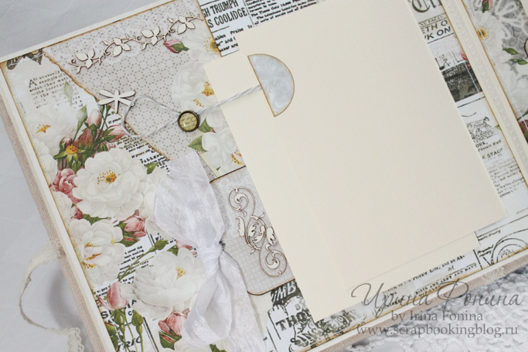 Думаю, что в этот альбом можно поместить и свадебные фотографии, и старые черно-белые снимки из семейного архива, и даже фото из путешествия. Поэтому я не стала делать никаких тематических надписей. Пусть будущие владельцы альбома решат сами, чему его посвятить. Альбом свободен, ждет своих хозяев :)