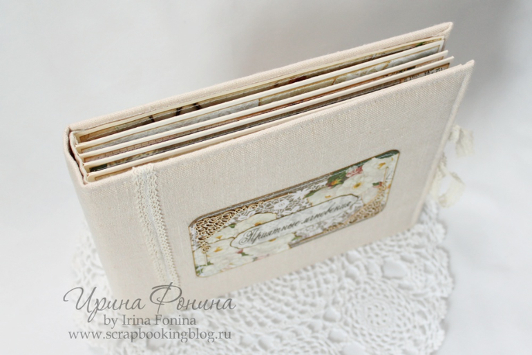 Я сделала книжный переплет с прошивкой машинной строчкой. обложка на картонной основе, обтянутой натуральным льняным полотном. Подкладка из синтепона делает альбом мягким на ощупь и очень уютным.
