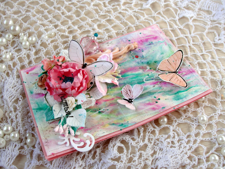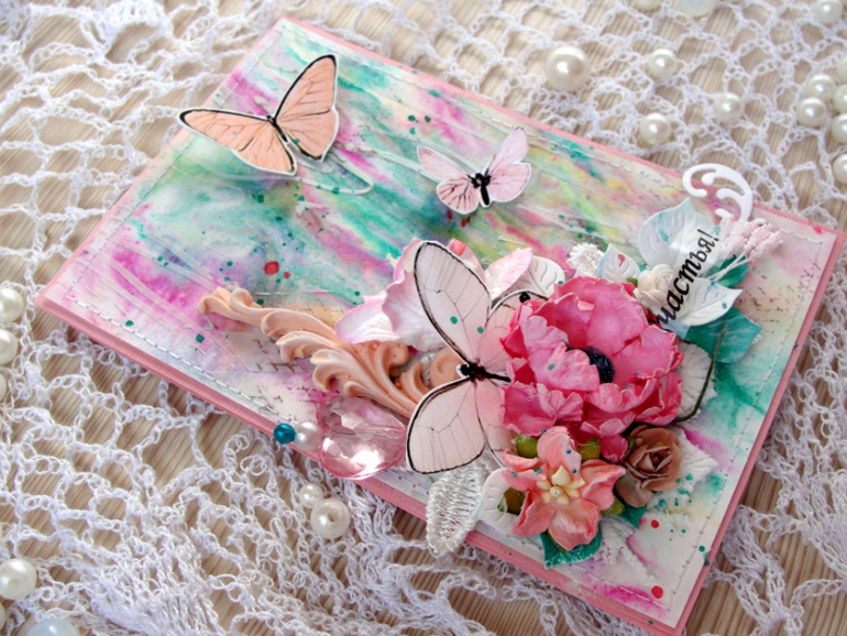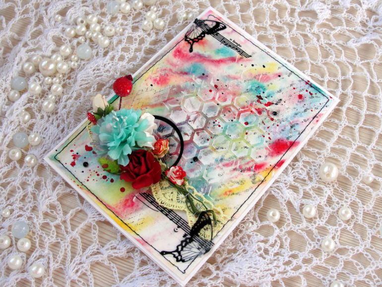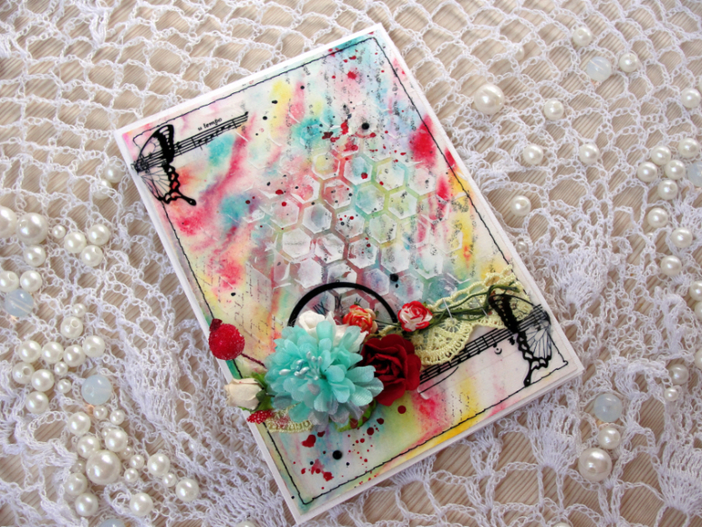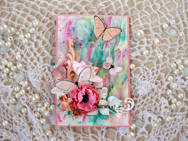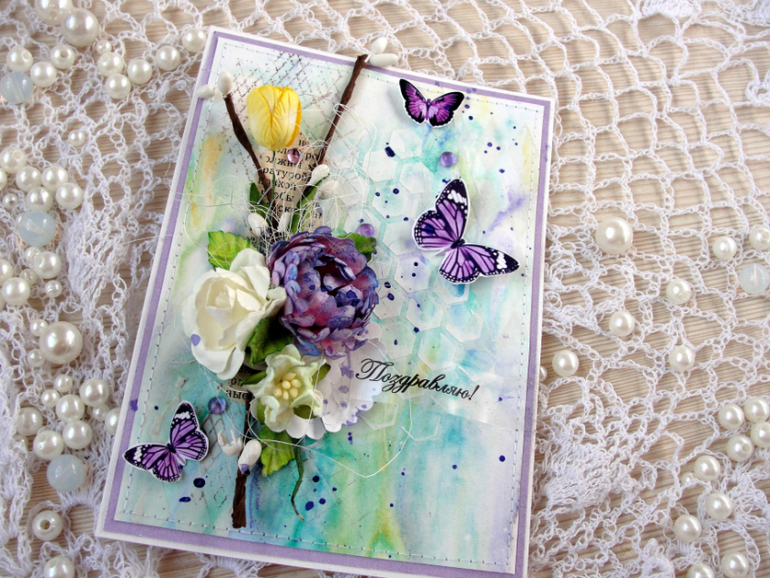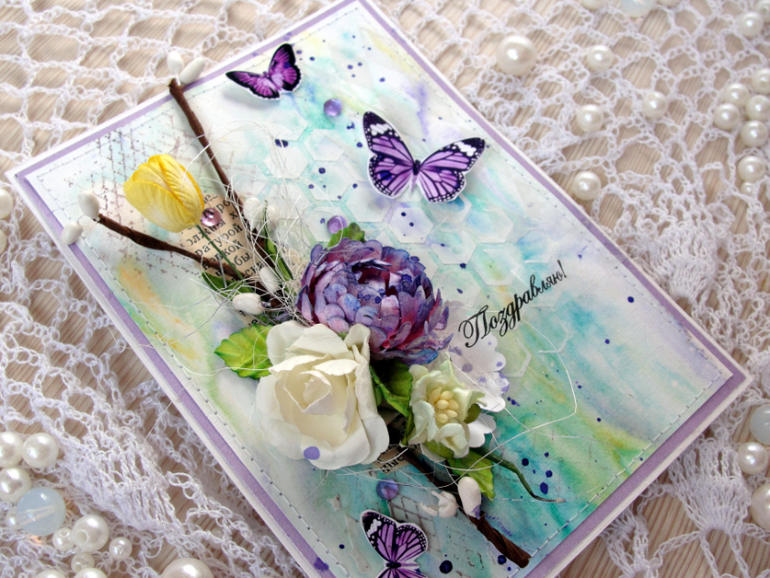 Открытки, приглашения, визиткиДобрый день, дорогие ББшечки! Хочу сегодня вам показать свои открытки с претензиями на микс-медиа) Давно засматриваюсь на этот стиль, накупила себе спреев, паст, трафаретов, в общем ящик уже всего... а я все боялась их использовать. Поэтому решила воспользоваться помощью своих деток(уж они то экспериментов не боятся) и мы с ними создали 4 фона, которые и легли в основу этих открыток!