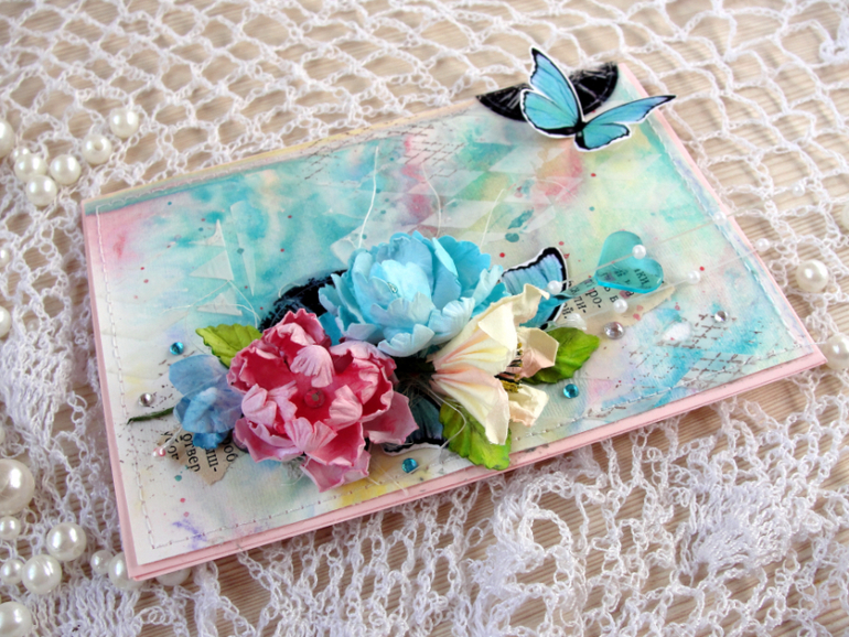 На первой и цветочки, и листочки моего производства, оверлей и бабочки - тоже домашняя печать.