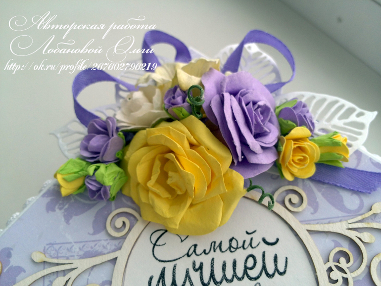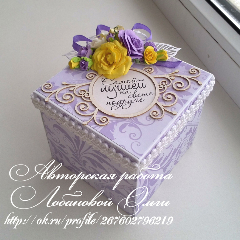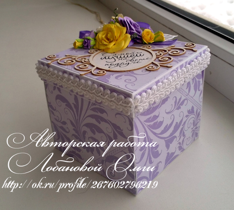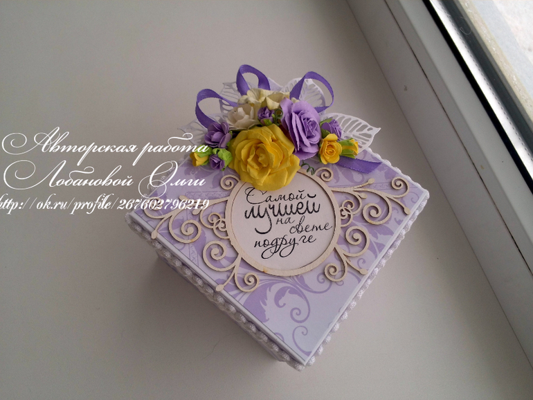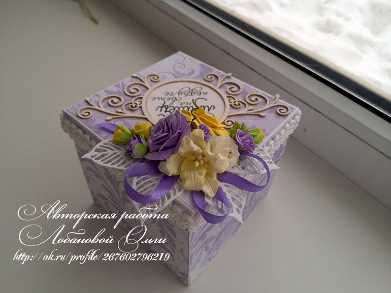 Заказчик никаких пожеланий не высказал, а сиреневый мой любимый цвет :-) мне кажется ему отлично подошел желтенький и сделал коробочку яркой и весенней :-)