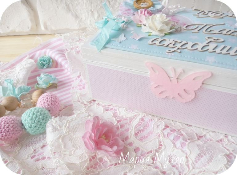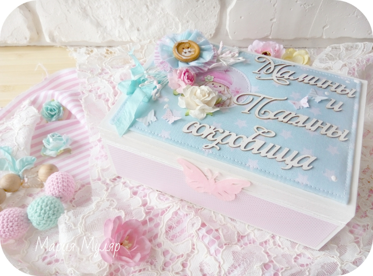 Она без привычных коробочек внутри но это даже лучше.Ведь мамочка может сама решать,что именно там будет храниться и с годами дополнять ее важными мелочами.
