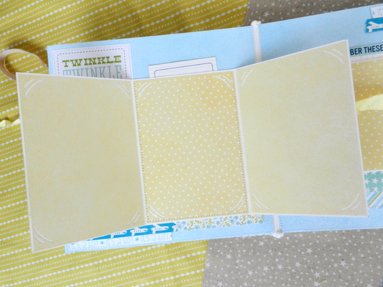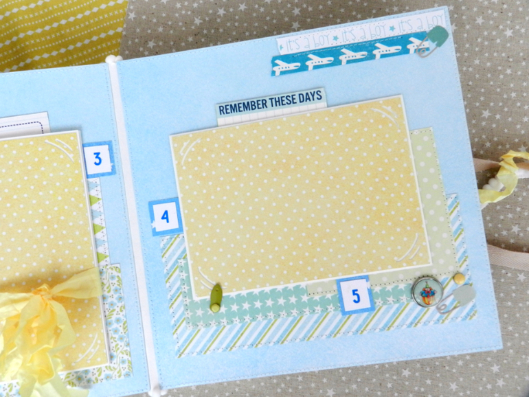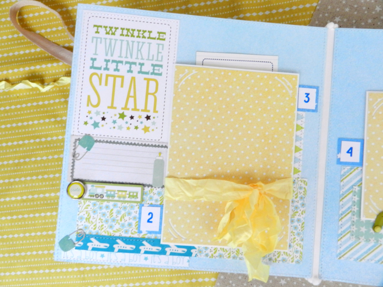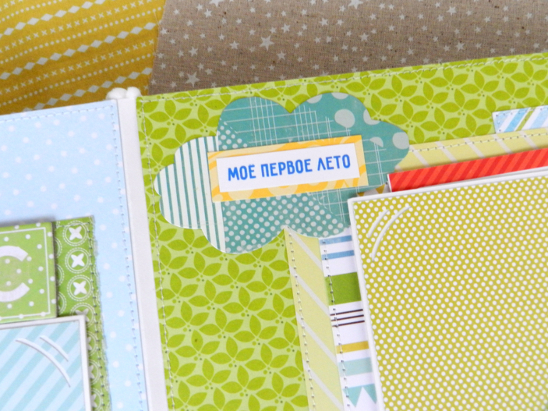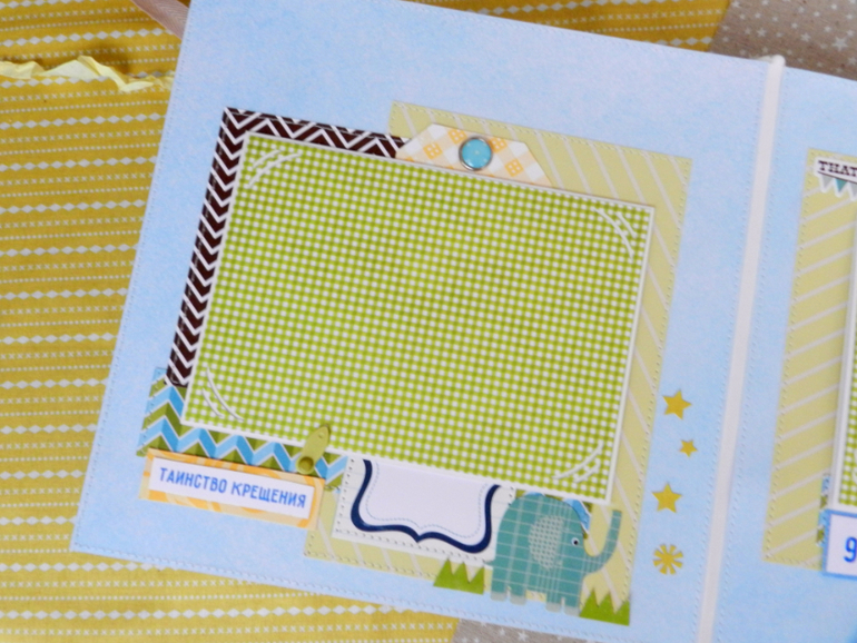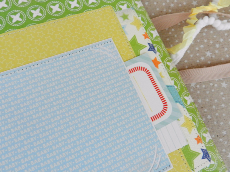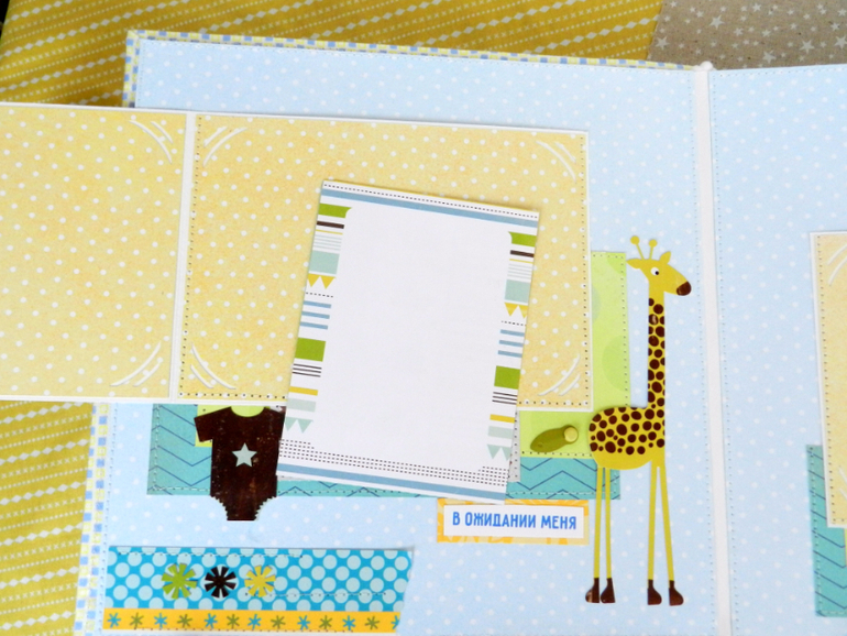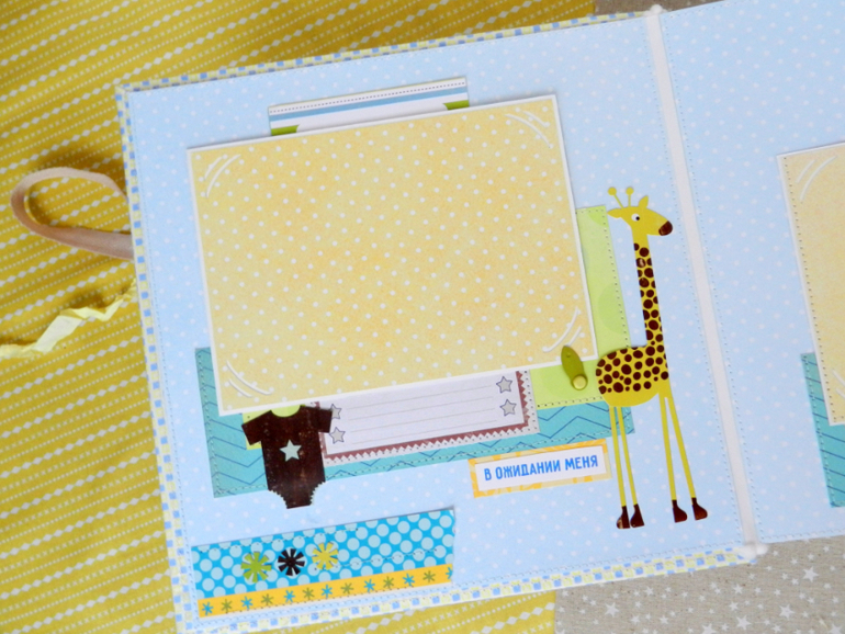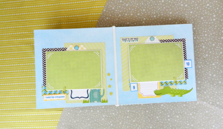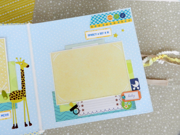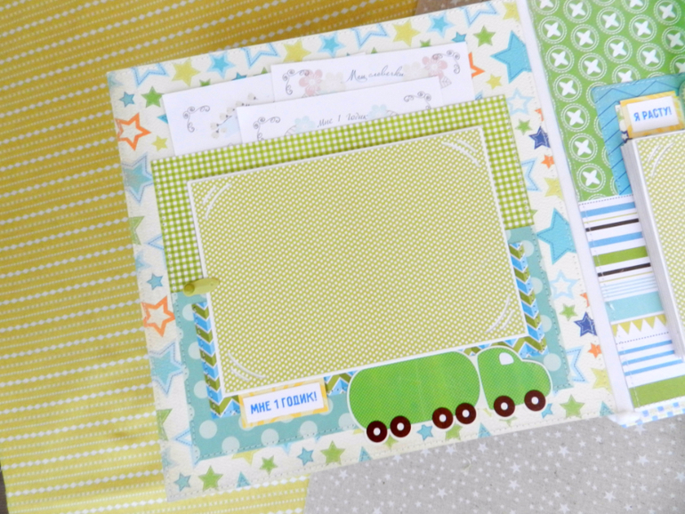 Альбом получился довольно-таки функциональным - на 18 страничках вместится около 70 фотографий, около 20 карточек о записи о развитии мальчика в первый год жизни, а ещё много просто карточек под стиль альбома для просто записей. Там даже есть раскладушка из 13 фото, куда можно разместить фотографии малыша от рождения до года, чтобы было наглядно видно, как он менялся каждый месяц. Семейное дерево, зубки, первые слова, первые шаги, отпечатки ножки и ручки, развитие по месяцам - ничто не осталось без внимания)