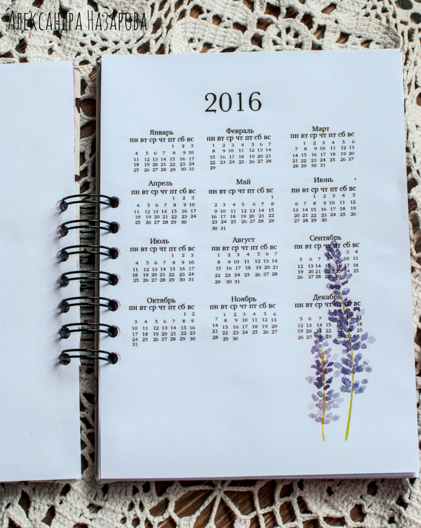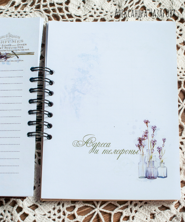 Внутри так же есть листы для записей, календарь, адреса и телефоны)
