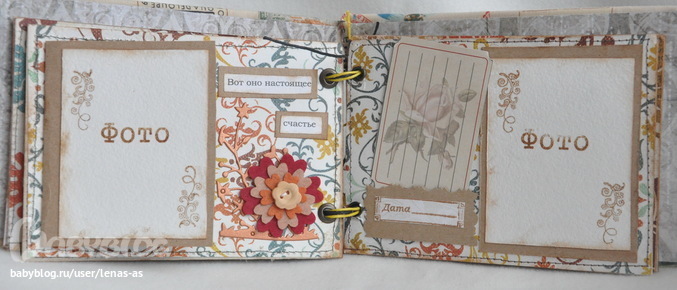 цветочки н этих страничках мне пришли в подарок от ирины с Украины..они просто необычные,и мне захотелось их применить..собственно только ради них альбом у меня и вышел в такой цветовой гамме и стакой бумагой