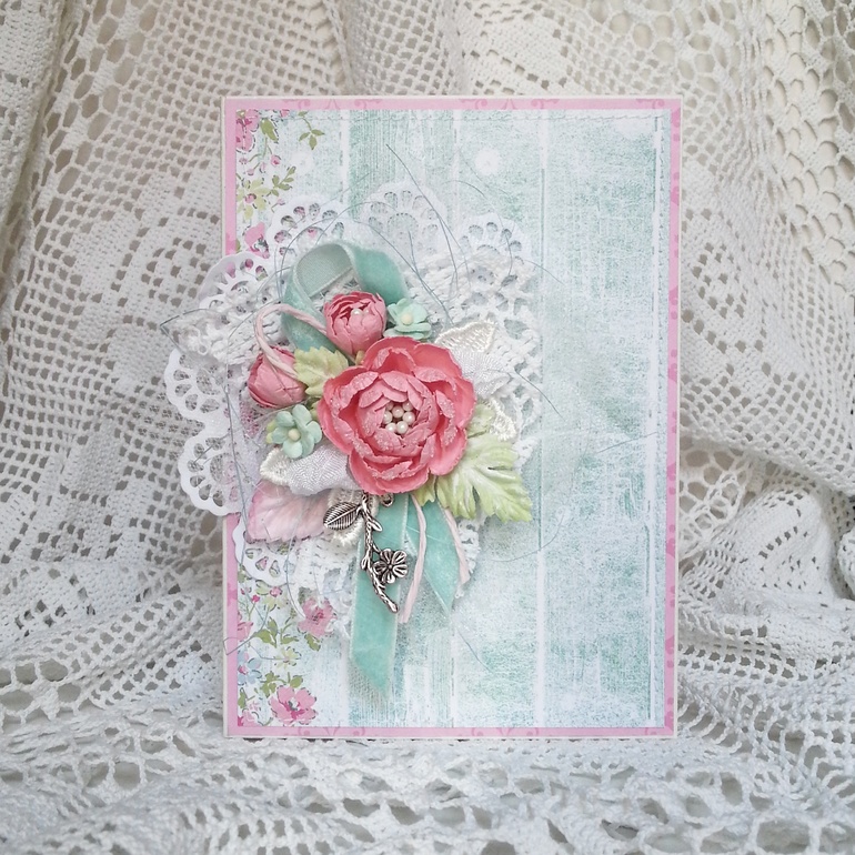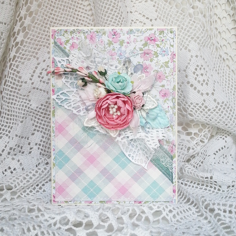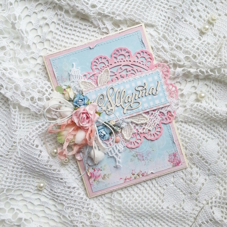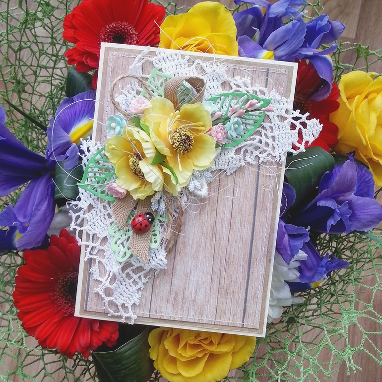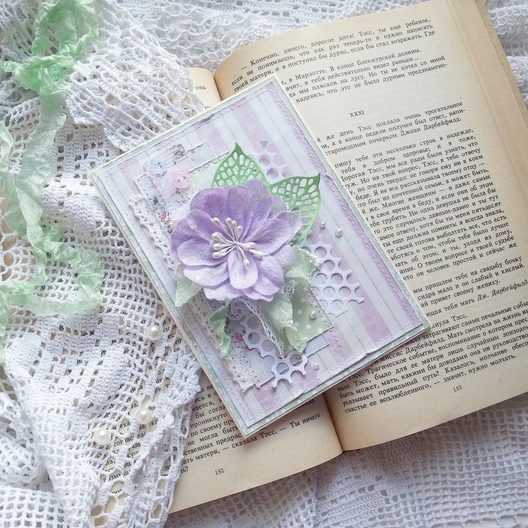 2. Сделав эту открытку, я не смогла остановится и у меня получилась серия из 3 открыток)) Бумажные цветочки делала первый раз по мастер-классу Виктории Петренко. Очень понравился результат)