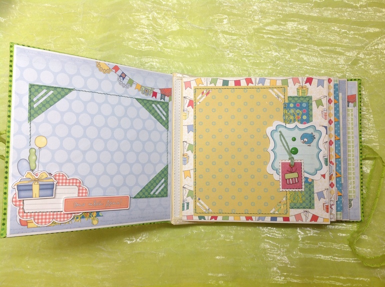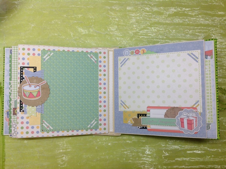 Альбомы ДетскиеВсем привет! Я к вам с новым альбомчиком для фотографий с Дня Рождения сыночка! Яркий позитивный, сохранит замечательные моменты с праздника ребёнка! Формат 15х15 см., 5 разворотов, рассчитан на 12 фотографий формата 9х13 см., в мягкой тканевой обложке.