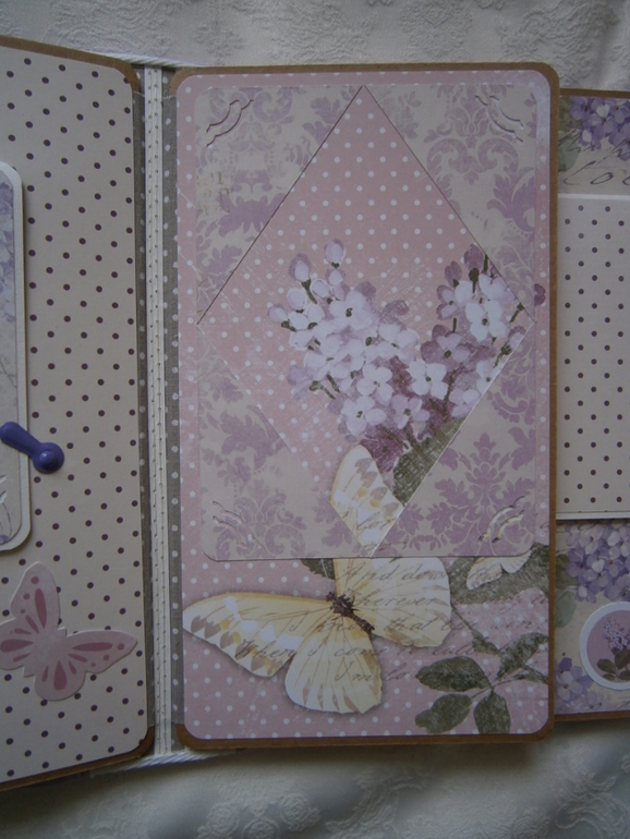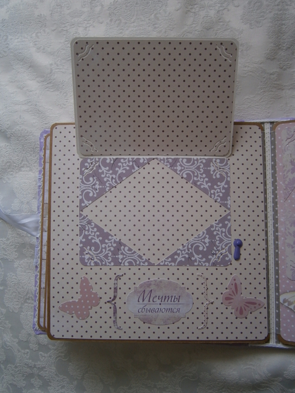 А вот и та самая полустраничка. Не хотелось полностью закрывать эту красивую бабочку с веточкой сирени, в чём до поры до времени помогают уголки для фото))