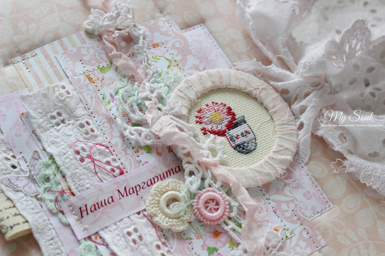 Вышивка маргаритки на обложке не случайность) Девочку зовут Маргарита и мне хотелось отразить именно этот цветок на обложке альбома. Но поскольку подходящей картинки я не нашла - решила вышить маргаритку сама))))