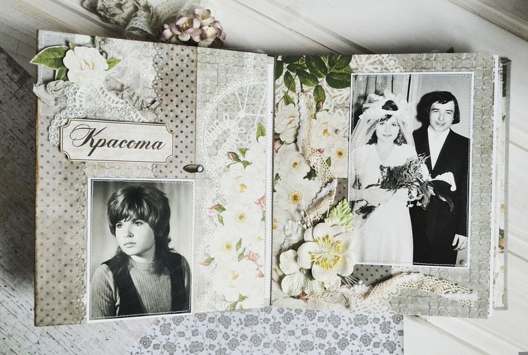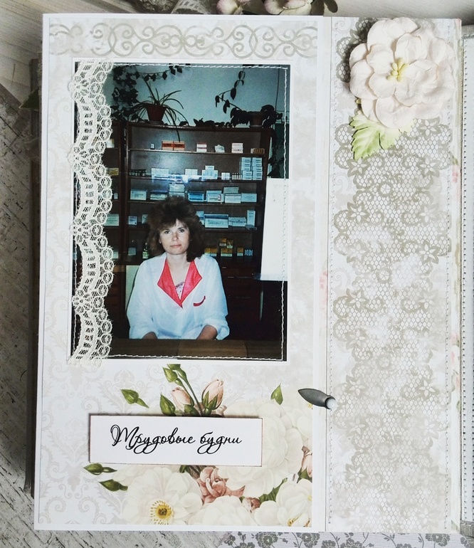 Альбомы для женщин (девушек)Привет всем. Хочу показать вам альбом о жизни женщины. Заказали его на юбилей одной сотрудницы аптеки. Вот такой вот получился альбомчик. Размер 22 на 18. Работать с черно белыми фото конечно очень трудно, и альбом делался долго около 2-х недель. Подарили его только 26 марта и разрешили выложить в ВВ. Знаете что самое приятное и трогательное, что счастливая обладательница данного чуда расплакалась и долго хвалила всех кто сделал такой подарок и меня в том числе. Приятно дарить людям эмоции.