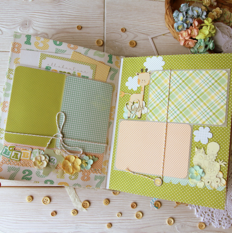 1 разворот по моей задумке посвящен беременности и первым фото малыша.