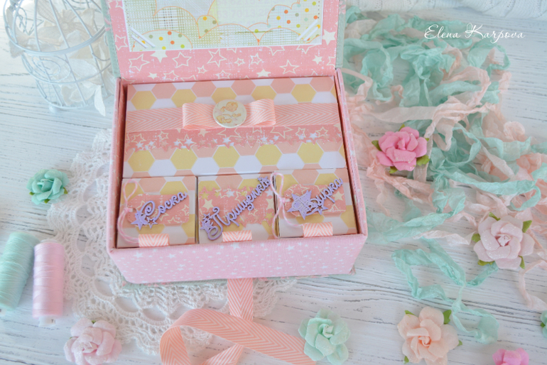 Давненько не забегала я с работами) Заказики, заказики и времени на интернет и выкладывание совсем мало остается. Оно и к лучшему! Сжирает наше драгоценное время интернет безжалостно! Ну да ладно, это вечная проблема современности. А я к вам с коробочкой мамины сокровища. Очень она мне нравится) Сделана на заказ для мамочки маленькой принцессы, которая обожает звездный принт во всем! А еще я для нее делала прекрасный звездный альбомчик, покажу чуть позже) ну а кто сказал, что звезды только для мальчиков?) Девочки тоже их очень даже любят