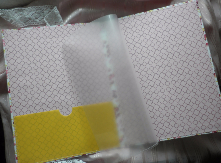 Внутри плотный файл для свидетельства о рождении и небольшой кармашек для СНИЛСа и мелких справочек)