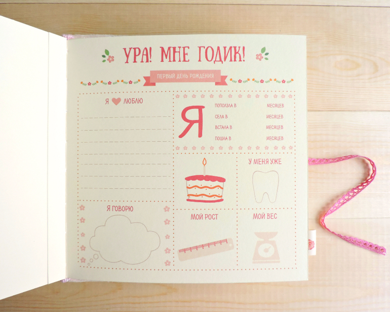 На страницах такого альбома Вы сможете сохранить самые важные и яркие моменты вашей счастливой жизни. В данный детский альбом Вы сможете не только вклеивать фотографии Вашего малыша, но и дополнять их комментариями и забавными историями о нем. В дальнейшем альбом сам расскажет о том, как рос и развивался Ваш малыш. Я сама мама, поэтому я знаю, что хотят видеть молодые родители в своем детском альбоме.