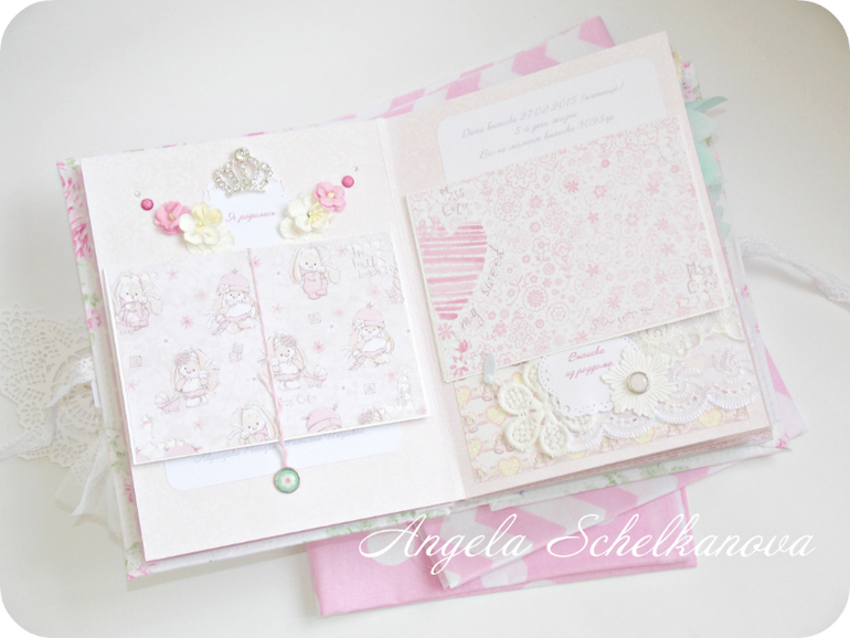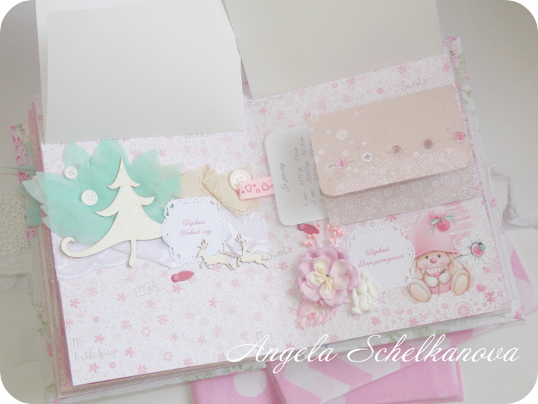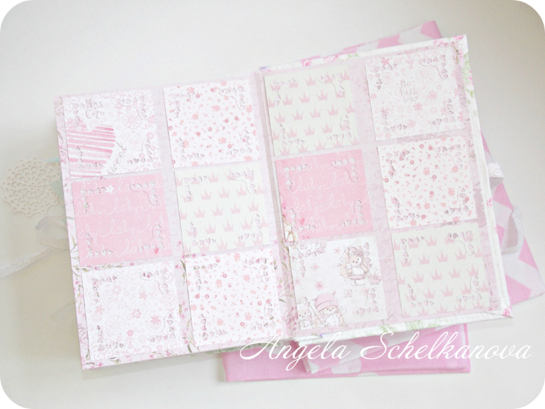 Очень красивый альбом!!! Только его совсем как-то раздуло, наверно нужно побольше расстояние между страницами оставлять.