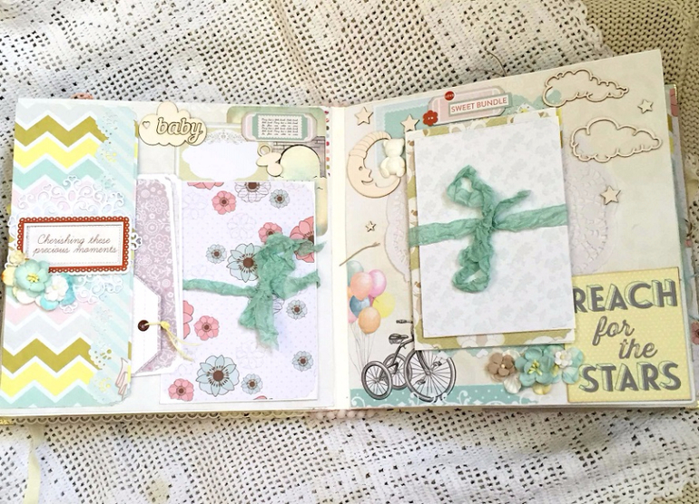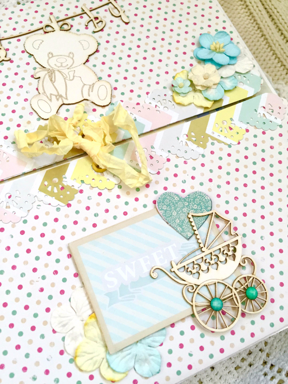 Альбомы ДетскиеПри создании этого альбома была непростая задача - будущие родители специально не узнавали пол ребеночка, поэтому надо сделать его, как говорится "унисекс", подходящим для мальчика и девочки.