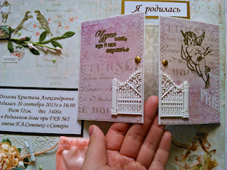 Готова моя новая работа - большой, красивый, нежный и уютный альбом для девочки. Размер 28*30 см, вмещает 70 фотографий преимущественно формата 10*15. Есть карман для бирочек, карточки для отпечатков ножки и ручки малышки, много карманов и карточек для дополнительных фотографий, а так же, обилие разнообразных украшений. Альбом в мягкой тканевой обложке. Переплет очень прочный: прошивной, в нем два слоя ткани и плотного кардстока. Прекрасно держит тяжелые и габаритные страницы с объемным декором. Бумагу использовала Prima Marketing "Princess" и некоторые листы от ScrapBerry's