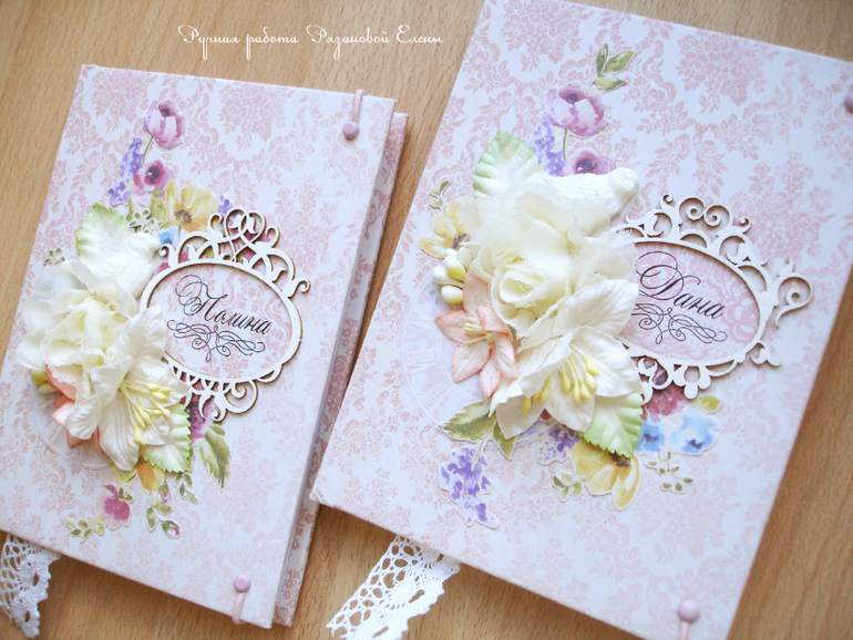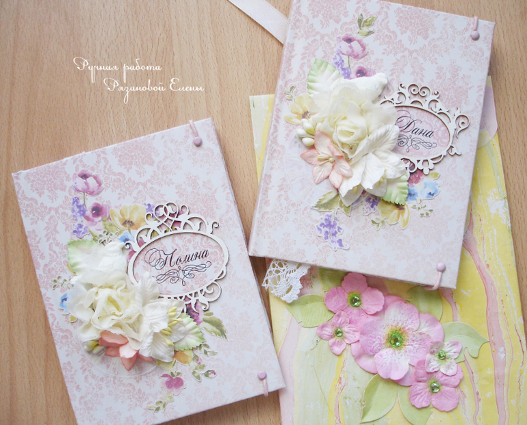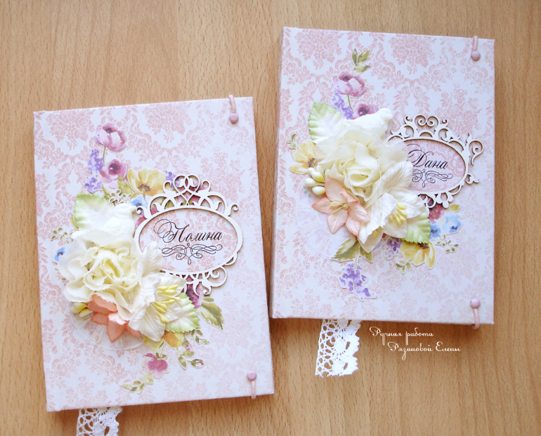 БлокнотыСрочный заказ от коллеги, два блокнотика для двух сестренок, обязательно одинаковые. В основе готовый блог, только обложку заменила, закладочку и форзацы.