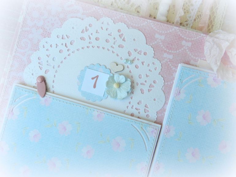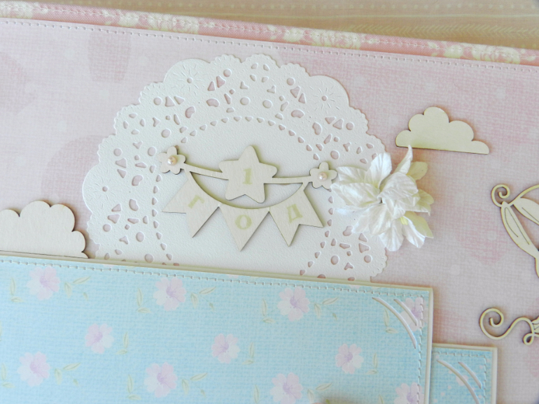 Не часто делаю альбомы такого формата - 25х25, но как оказалось очень зря. В этот альбом вместилось так много всего! Мне теперь кажется, что это оптимальный формат для полноценной подробной истории первого года жизни малышки или малыша. В него вместилось около 80 фотографий стандартного формата 10х15, расположение как по месяцам, так и по событиям или просто с кем-то, например, с мамой или папой, много-много карточек о развитии малышки: первые звуки, зубки, слова, шаги, а также все изменения по месяцам, первые достижения, а также места для отпечатков ладошек и пяточек, конвертик для бирочки, локона, письма мамы с папой для доченьки в будущее и т.д.:)