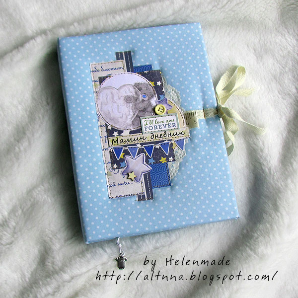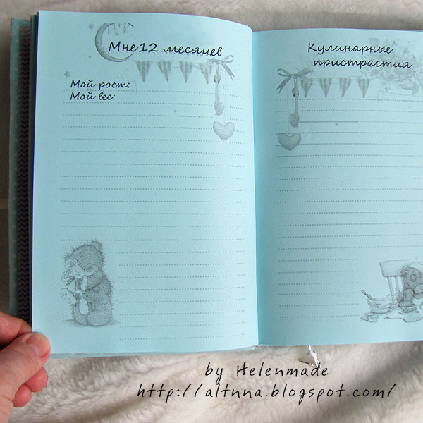 БлокнотыБлокнот для мамы маленького мальчика. Формат А5, внутри 100 листов в линию с мишками,фразами про деток, есть разделители для каждого месяца первого года жизни крохи,таблички развития малыша, есть места для отпечатка ручки и ножки, графиком роста зубов, смешными фразами, первыми рисунками, фото мамы и папы, первого фото УЗИ.Обложка обтянута хлопком, все детали декора пришиты для прочности.