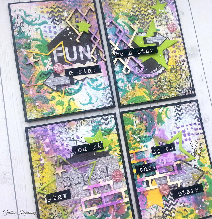Добрый день! Пришла показать серию АТС (давно я их не делала) в стиле микс-медиа с напутственными надписями)).. Они еще красиво переливаются, жаль освещение не позволило показать всего).. В общем смотрите..