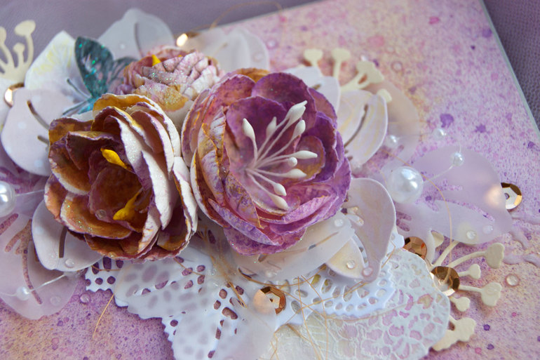Ну и немного поближе, рассмотрим детальки)))) Цветочки ручной работы, нежные капельки на листиках и лепестках и любимые пайетки))))))