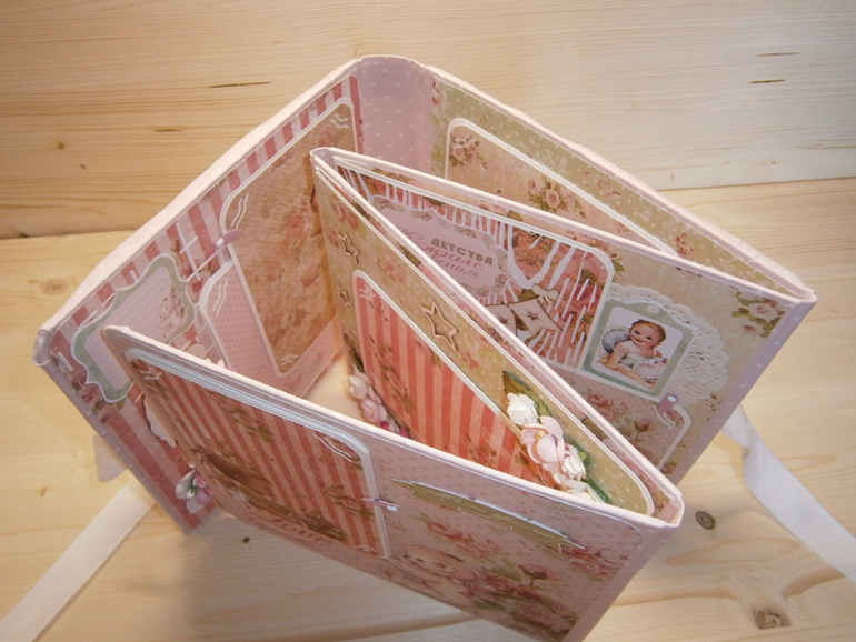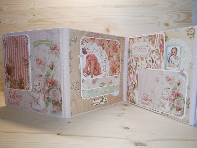 Альбомы ДетскиеБольшой привет всем, кто меня читает и смотрит! Сегодня я к вам с девчачьим альбомом (вторым за мою, пока ещё, небольшую скрап карьеру), да необычной формы. Этот вид переплёта мы проходили на курсах у Светланы Ковтун - альбом-гармошка. Кто больше предпочитает видео обзоры, альбом можно посмотреть тут: Альбом имеет конкретного владельца, потому на обложке уже есть имя малышки: