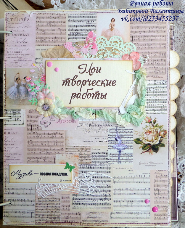 Обязательным условием были бабочки, цветочки и нотные знаки. Фото на обложку нужно было сделать нарисованным)) Файлы со всякими нужностями она вставит сама, моя задача была сделать обложку и разделители) Прошу к просмотру)