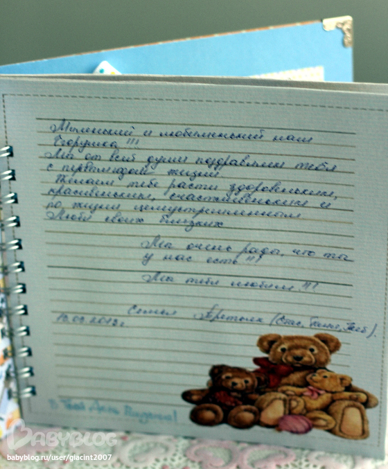 Книги пожеланий, чековые книжки, книжки желаний, кулинарные книгиВ преддверии первого дня рождения сынули сделала книгу пожеланий, в которой на торжестве все гости писали свои пожелания имениннику. Книга размер 20*20, 6 листов из которых 5 страниц разлинованных для написания поздравлений, 6 страниц будут украшены фото именинника с гостями, остальные страницы просто украшены. Всем наша книга пожеланий понравилась. А теперь фото, прошу под кат: