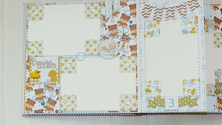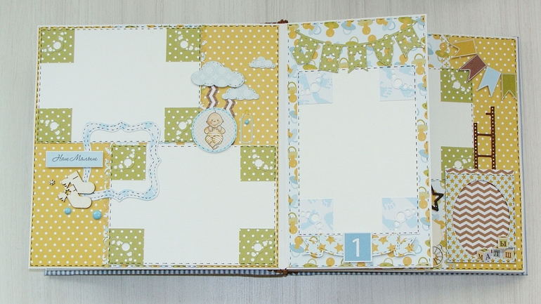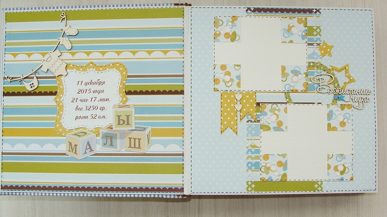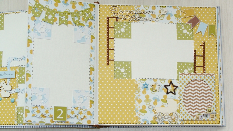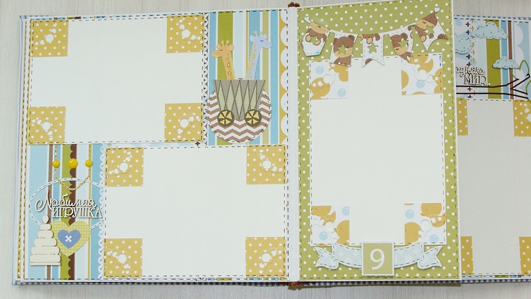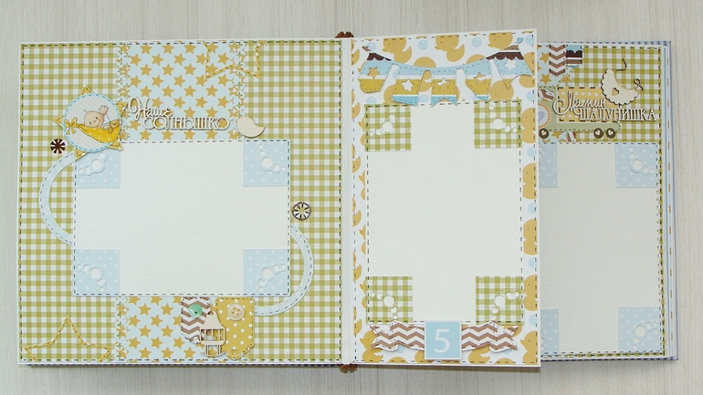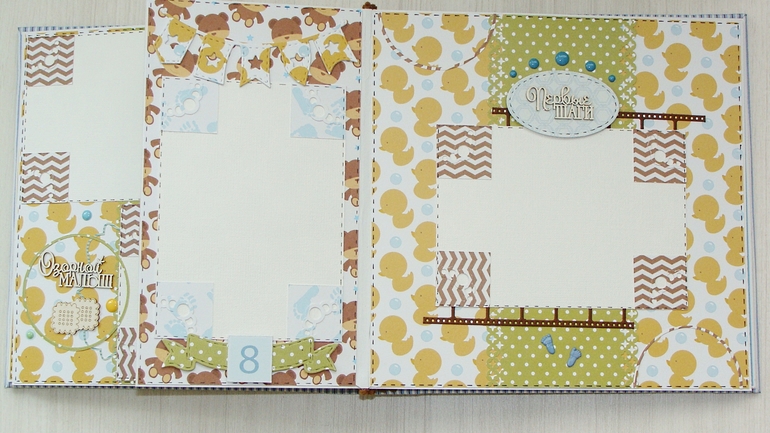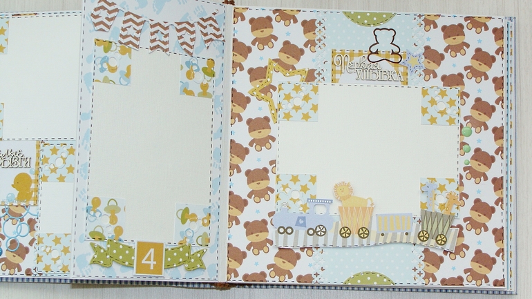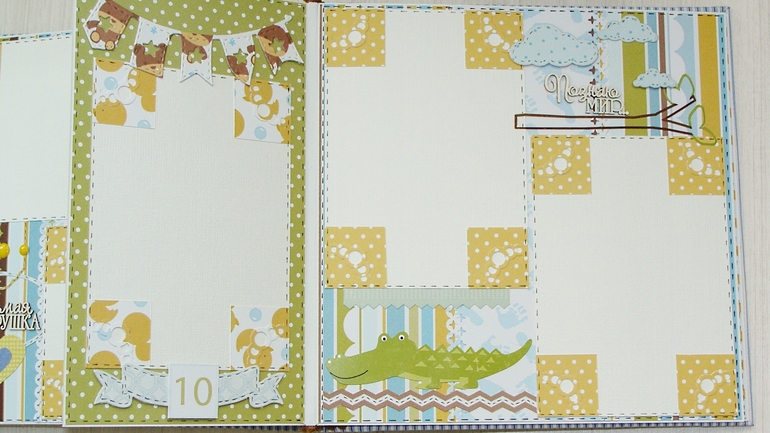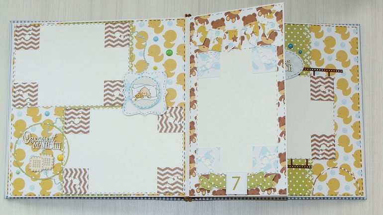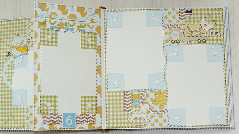 Альбомы ДетскиеПривет, скрап-красотки! Покажу вам сегодня альбомчик. Сделан он для малыша Тимофейки. Формат альбома 21х21, вмещает в себя 32 фото формата 9х13 (формат фото - пожелание заказчицы). Бумага от ScrapMir и чудесный чипборд от (Юля, спасибо!). Заказчица хотела, чтобы ее альбомчик был похож на мой и он действительно похож, только заказчица просила, чтобы в альбоме не было "открывашечек", не знаю, почему, но вот так... Впервые делала переплет по (Света, респект тебе, все очень понятно, получилось все с первого раза), и еще мы долго не могли определиться, как лучше сделать альбом: тематическим или по месяцам, но выход нашелся - все развороты тематические, а вот вставки между ними сделаны по месяцам (сейчас сами увидите), вставки являются самостоятельными страничками, только меньше по размеру основных, 2 в 1 в общем. Вроде с описанием все, а теперь сам альбомчик