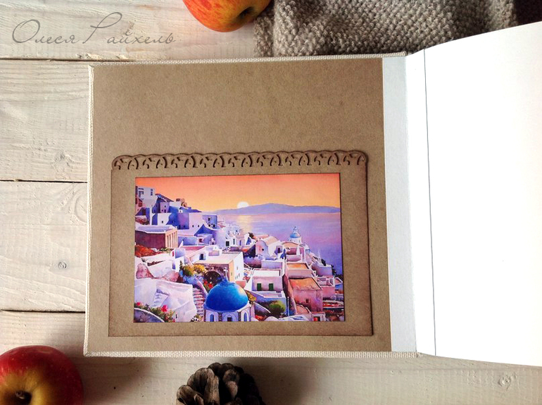 Представляю альбом для счастливой семьи "С новосельем",сделан на заказ. Легкий, летний, будто из южного городка)) . Вмещает в себя 50 фотографий 10*15 см. и два кармашка для приятных мелочей.