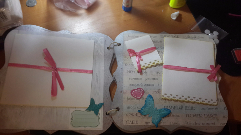 Добавлю половник дегтя к стакану меда. Это ужас!!! Уж простите. Бумага наклеена не на одном расстоянии, бабочки не вписываются ни по стилю, ни по цвету, края подложек затонированы ужасно... Вероятно вас не смутило, что комментарии только от ваших ББподружек и ни от кого от скраперов. Еще раз извините за резкую критику, но если только хвалить это не дает стимула к продвижению. Посмотрите как выполнены альбомы у скраперов и сравните со своим. Желаю, действительно, продвижения в творчестве