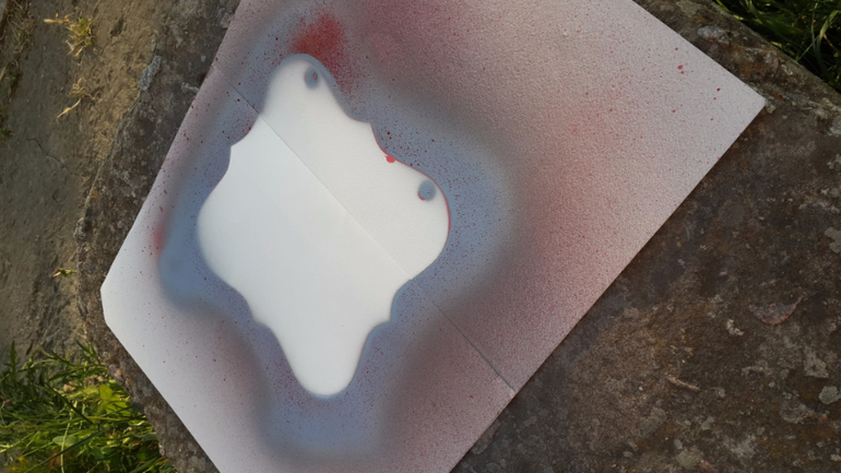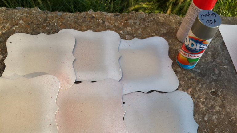 Тк бумага у меня немного меньшего размера, чем основа, то основу я покрасила в серебряный и сделала красные брызги.