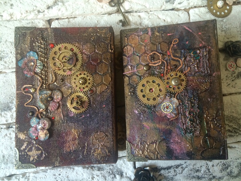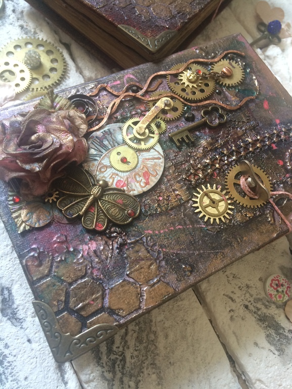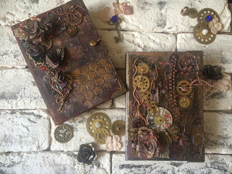 БлокнотыБыло очень интересно с ними работать! Формат А6. Хотела сохранить всю нежность и женственность, но при этом остаться в стимпанке (очень полюбился мне этот стиль!)) Надеюсь у меня получилось...