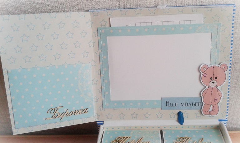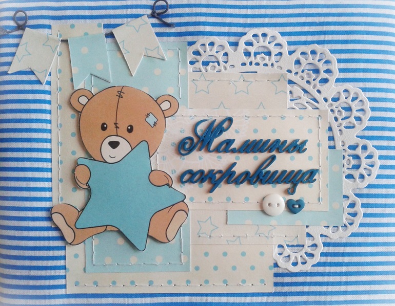 В работе использована бумага Наш малыш от MonaDesign, вырубка, вырубная салфетка, чипборд, пуговки: