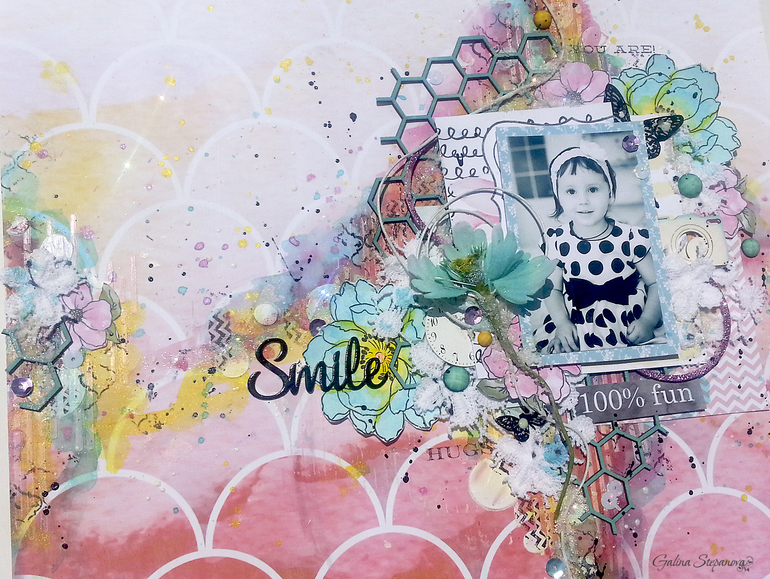 Странички отдельныеДобрый день! Пришла показать вам страничку в стиле Микс-медиа, очень люблю этот стиль, оторвалась не на шутку)).. В главной роли моя доча конечно же))..