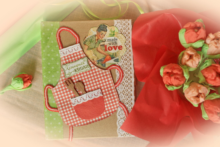 Книги пожеланий, чековые книжки, книжки желаний, кулинарные книгиОй, девочки, наконец-то доделала для себя свою первую кулинарную книгу:) Делала долго, с перерывами, читала много сайтов по скрапбукингу, изучала как,что делается, училась вплоть до того, каким клеем склеивать. И вот что получилось:) Оцените, пожалуйста:)