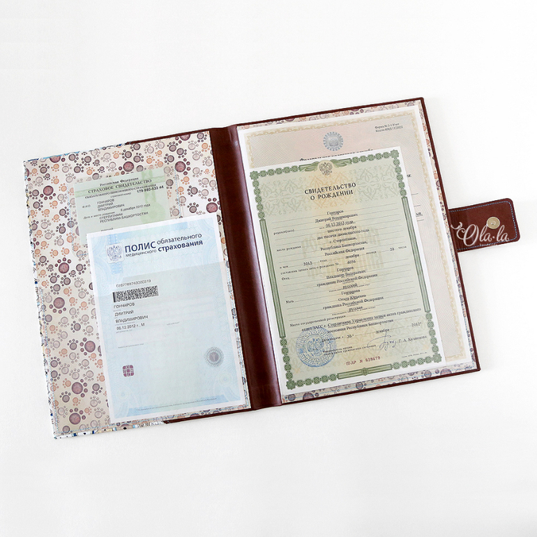 внутри файл и кармашки, два больших и один для пенсионного... их не особо видно, для наглядности сфотографировала с документами))
