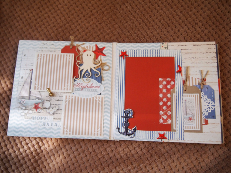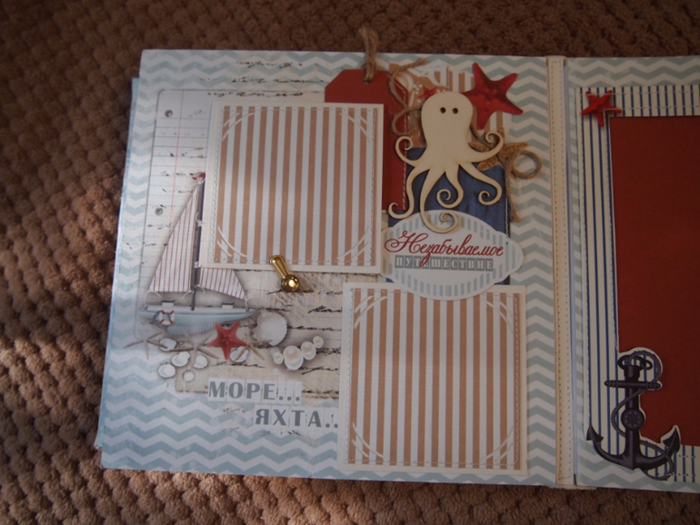 Альбомы про путешествияВсем привет! Хочу показать вам свой первый альбом, сделанный в подарок для научного руководителя. Она работала без отпуска несколько лет, а в этом году смогла найти время для отдыха на море. Поэтому альбом и посвящен морской тематике. Так как я новичок в мире скрапбукинга, очень интересно ваше мнение.