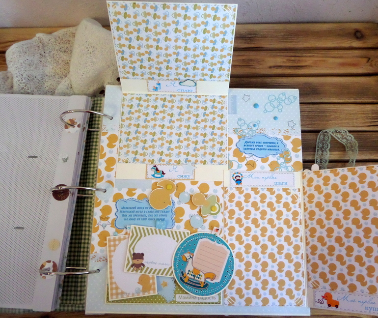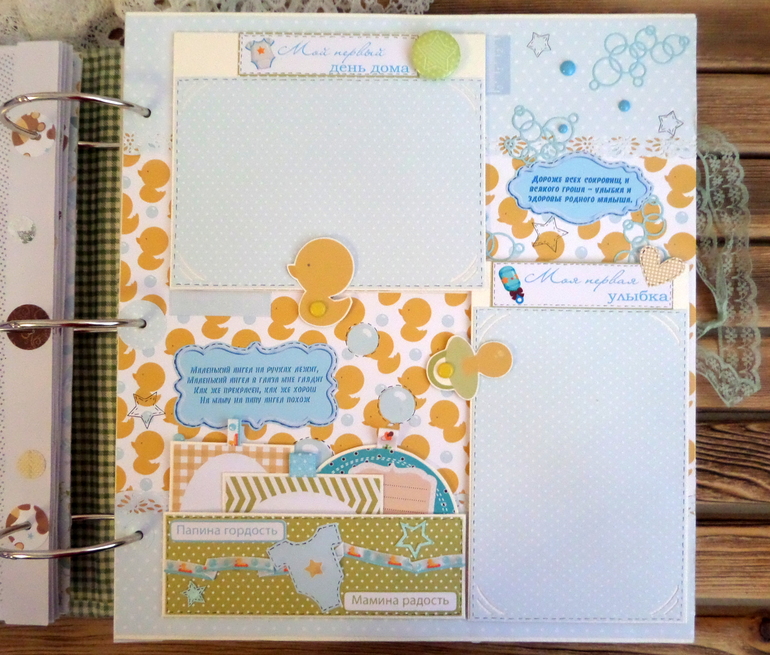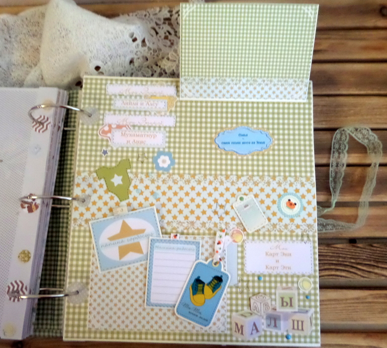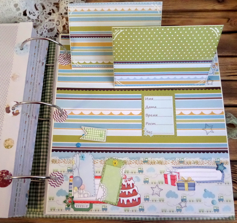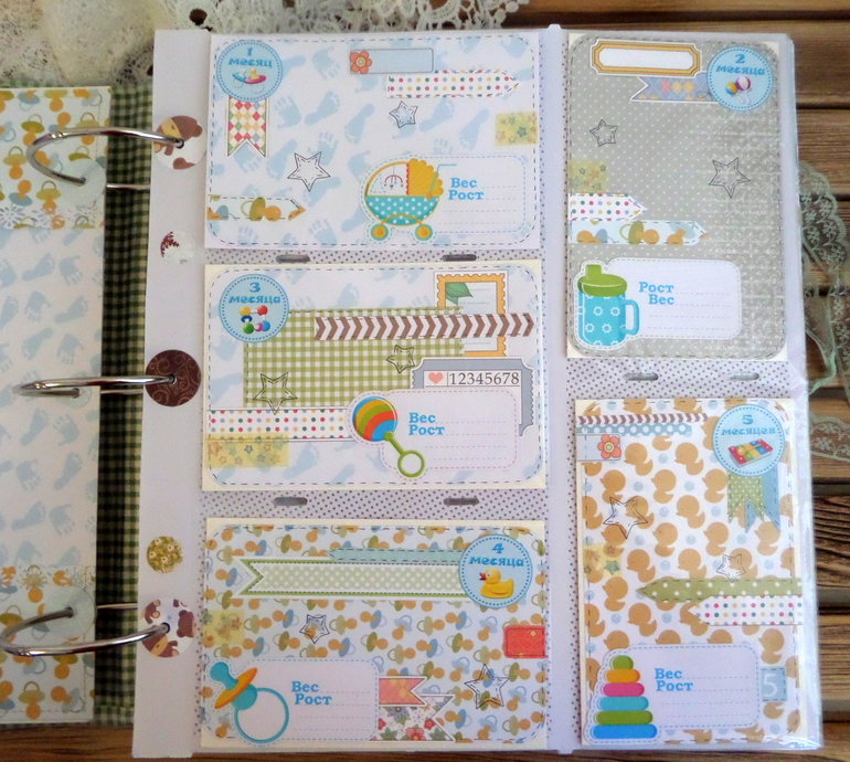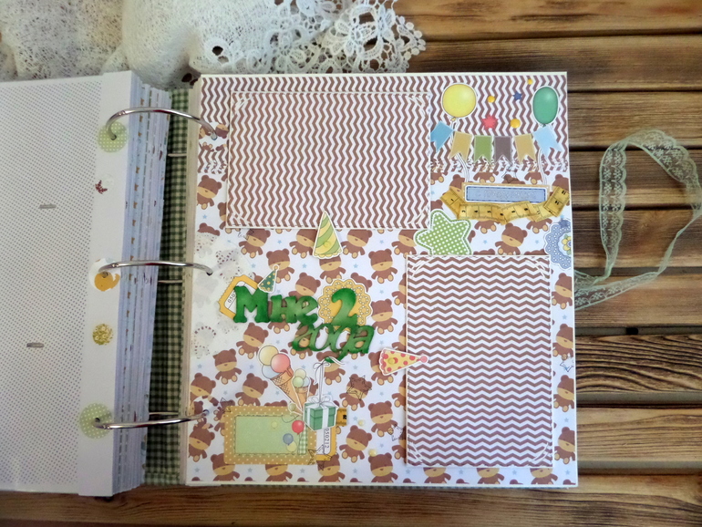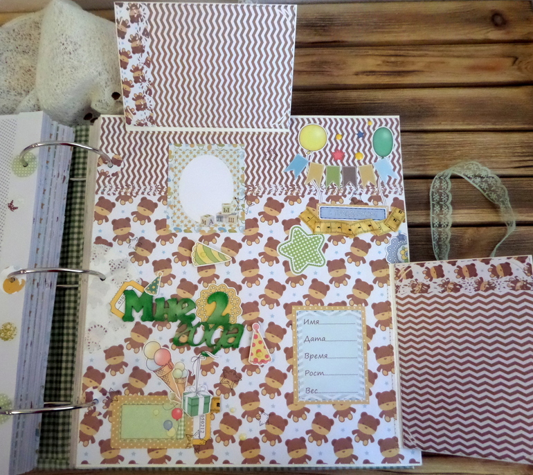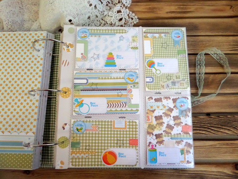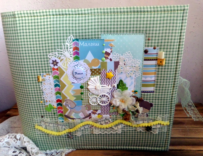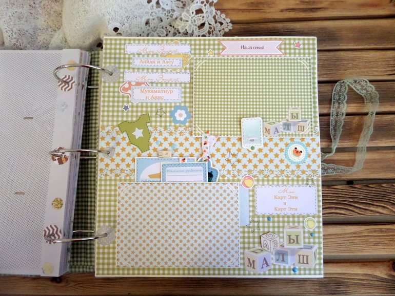 Альбомы ДетскиеВсем доброго утра, дня, вечера, ночи!) Сегодня я к вам с последним из "не показанного"!) Это мой долгострой и, на сегодняшний день самый большой альбом, который я когда-либо видела и делала! Сразу хочу поблагодарить за доверие и за ТЕРПЕНИЕ мою чудесную заказчицу (которая нашла меня именно в нашем ББшном сообществе)). Итак! Девушка обратилась с просьбой сделать альбом (может кто-то помнит - альбом на 500 фото?). Да! да! на 500 фото, уже распечатанных форматом 10х15 см. В качестве мастерицы она выбрала меня (чему я очень рада). В общем, после обсуждений мы пришли к решению делать гибридный альбом - скраповые странички и готовые файлы. Если со скрап страничками всё было понятно, то с файлами возникла загвоздка. Конечно я сразу обратила свой взор на проджект лайф (тем более, что заказчица еще попросила сделать карточки на каждый месяц от 0 до 4-х лет), НО! на такое количество фото именно такого формата цена получалась просто неподъемной! Тогда я нашла более бюджетный вариант - готовый альбом с файлами на 600 фото на кольцевом механизме! Этот самый механизм позволял еще добавить и скрап странички, так, что дело оставалось за малым - оформить обложку и сделать эти самые странички с карточками. И тут снова возникает НО! Страницы альбома были сделаны из очень тонкой бумаги и потому, в тех местах где были отверстия под кольца, стали рваться еще не нагруженные фотографиями. Я снова не увидела большой проблемы, просто надыроколила кружочков, наклеила и пробила новые дырки, укрепив тем самым бумагу. НО! Радовалась я недолго, поскольку утолщение получилось таким, что скрап странички уже просто было не впихнуть))Не беда! -решила я и начала искать такой же механизм,только бОльшего диаметра. НО! Оказалось, что нет в России таких и под заказ не возят(( НО! Я не из тех, кто сдается!! Я нашла кольца диаметром 8 см!!! (девочки! они реально огромные!!!))) Сделала полностью новый альбом! Он еще в пути к своей хозяйке и я очень волнуюсь как он дойдет и понравится ли...Вот он мой исполин! 32,5 х 34 х9 см!!! 600 фото!!! 44 карточки!!! Прошу к просмотру!) Заранее прошу прощения за качество фото.