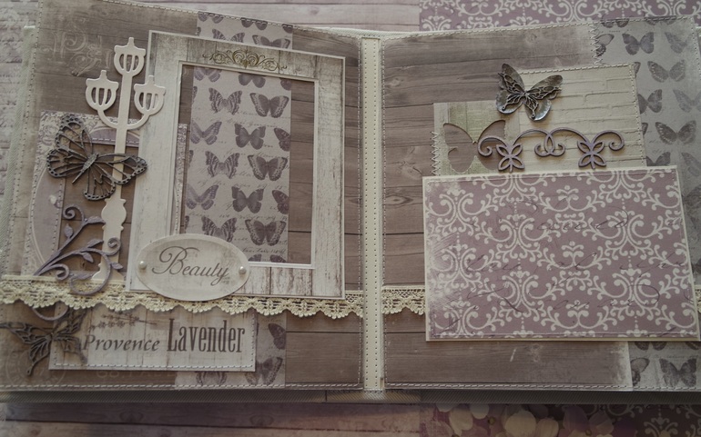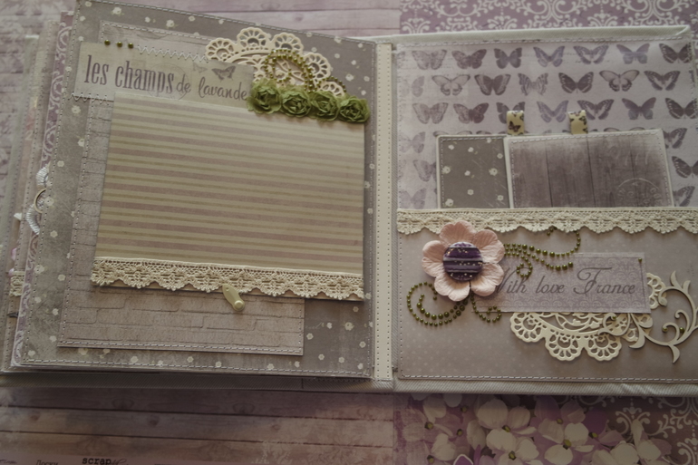 Альбом "Прованс" в нежных лавандовых тонах,. Изготовлен на заказ для милой девушки. Формат альбома 18х22,состоит из 5 разворотов и вмещает 60 фото разного формата.