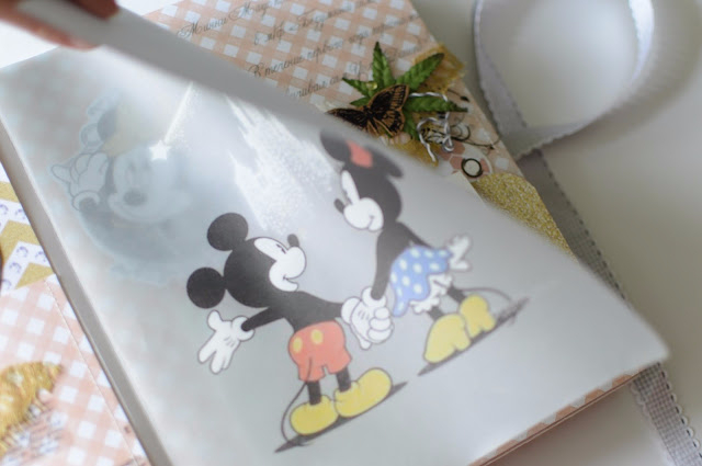 Первый разворот. Особенность разворота - это прозрачный вкладыш с очертаниями замка Дисней и Минни с Микки рядом.. Вкладыш разделяет обложку от альбома.