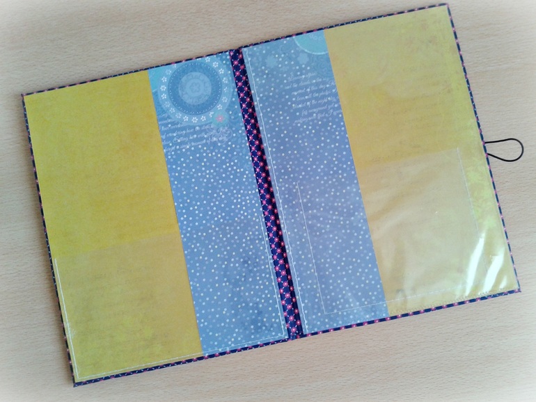 Обложка обтянута 100% хлопком, застегивается на резиночку, внутри файл для свидетельства о рождении и два пластиковых кармашка для других документов: