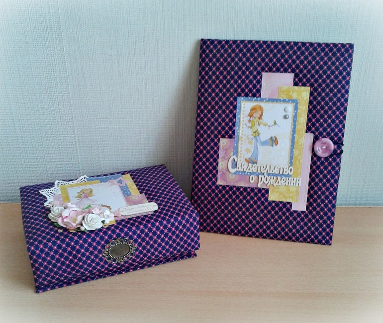 Обложки на паспорт и свидетельстваИ покажу еще сегодня папочку для документов, которую я сделала в комплекте со шкатулкой для украшений.