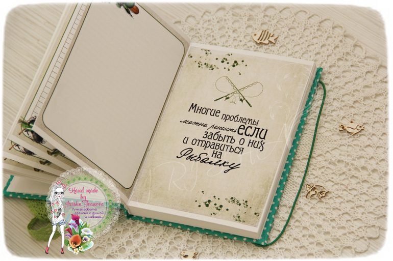 БлокнотыВаш муж, брат, сват или кто-то из родственников РЫБАК, то для них станет отличным подарком на любой праздник блокнот "Ловись рыбка" (дизайнер страниц Вакунова Инна).
