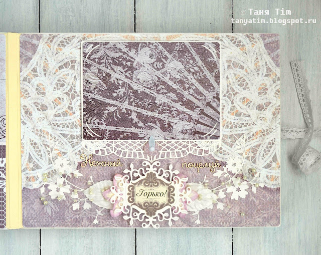 Основа страниц- пивной картон, края обработаны грунтом, бумага -"Свадебное кружево" от Craft Premier.