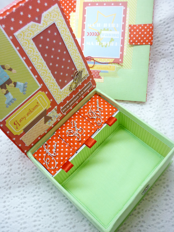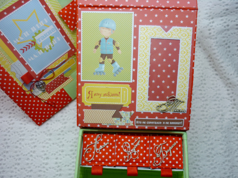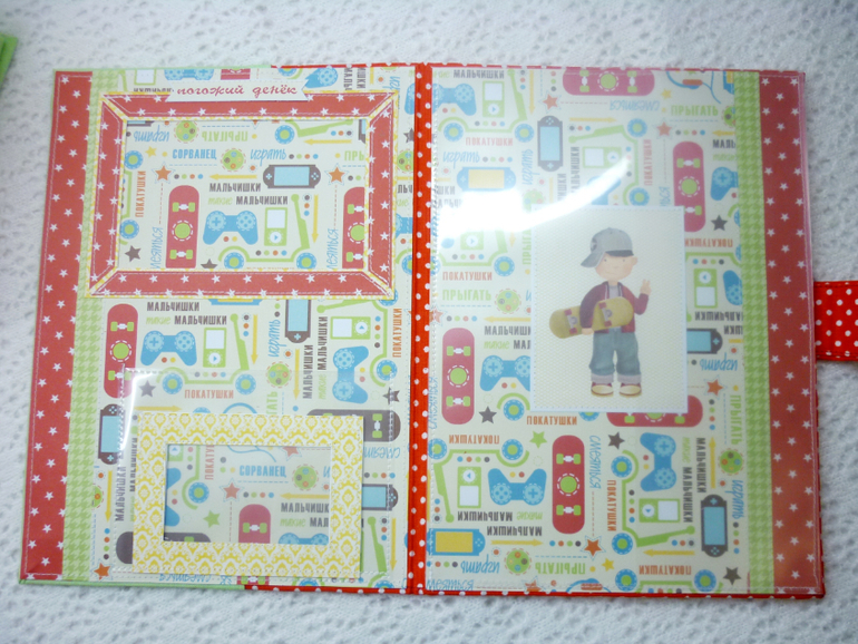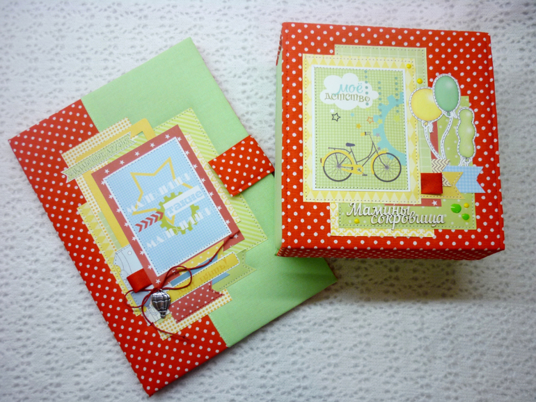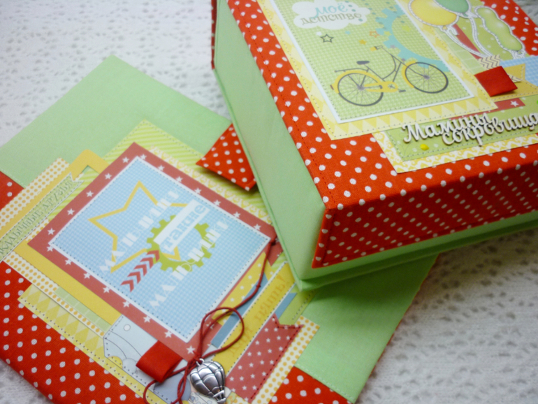 Давно я ничего не показывала! Поэтому исправляюсь и сегодня хочу показать яркий комплект для мальчика, состоит он из маминых сокровищ (16х16) и папочки для детских документов (19х26)! Выполнен из бумаги из бумаги ТМ СкрапМир "Такие мальчишки".
