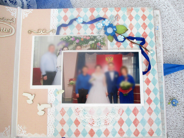 Хочу показать свой альбом, сделанный в подарок. Альбом 25 на 25 , 8 разворотов. Вмещает 50 фото 10*15, есть кармашек для дополнительных фото. Дальше много фото))) (качество изображений к сожалению не из лучших
