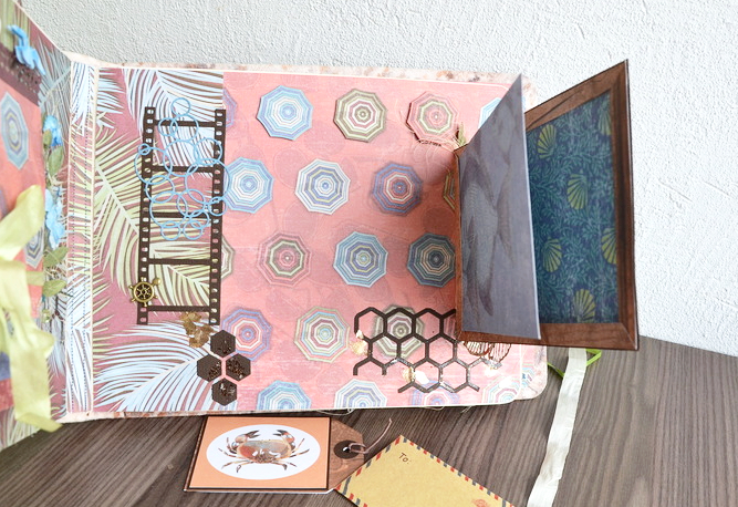 Спасибо, Лена. Очень приятно. Это мой второй альбом и первый на настоящем переплете. Посмотрела несколько МК, в т.ч. местный, и, с учетом предполагаемого количества фоток переплет получился мощный: картон/ткань/картон/скрапбумага/машинная строчка. Переборщила?