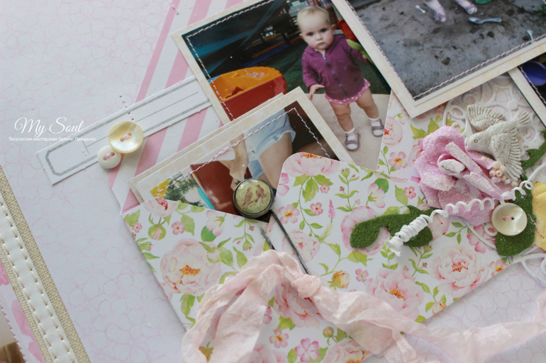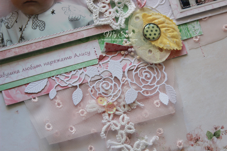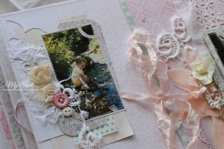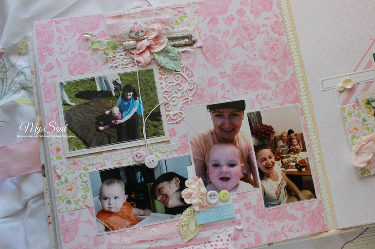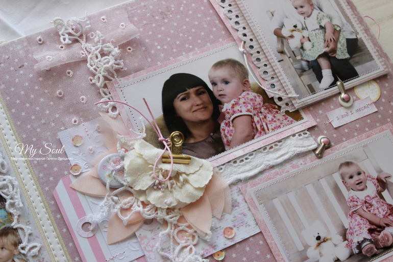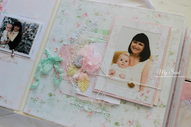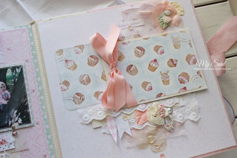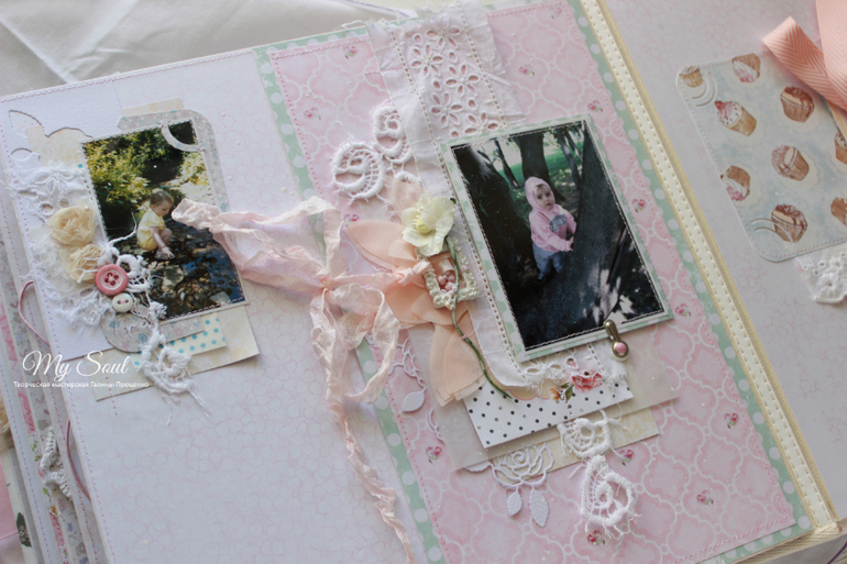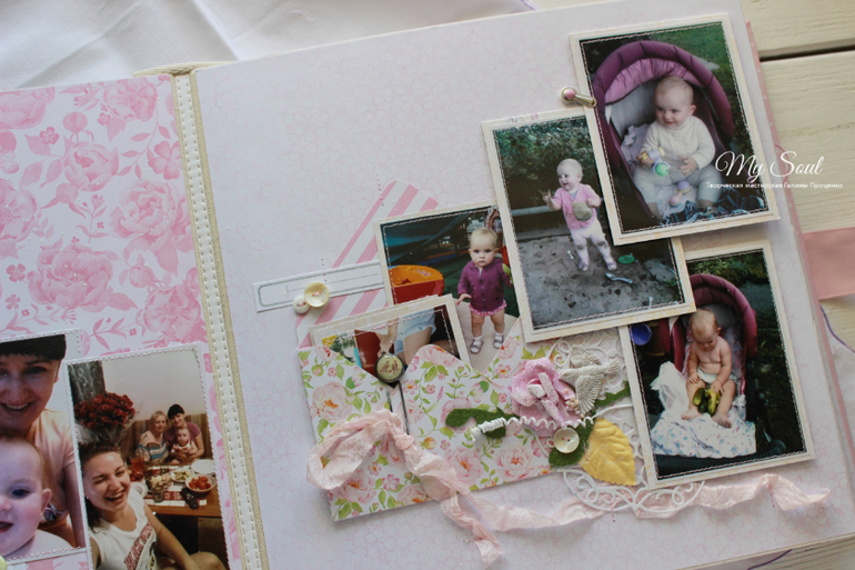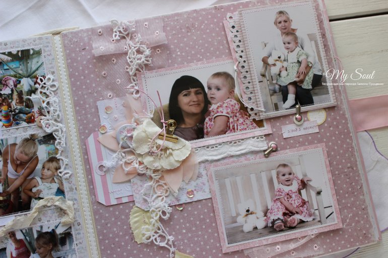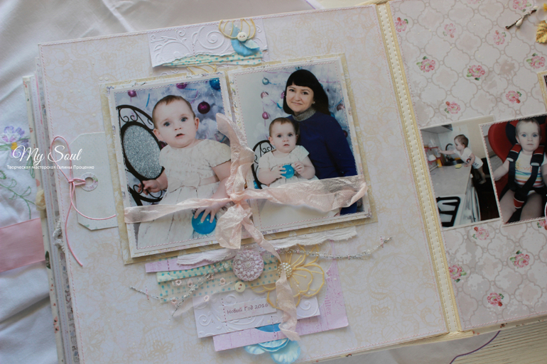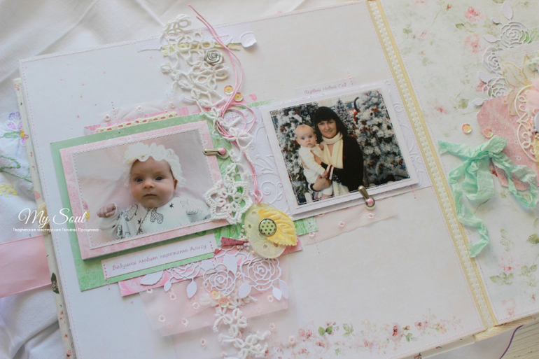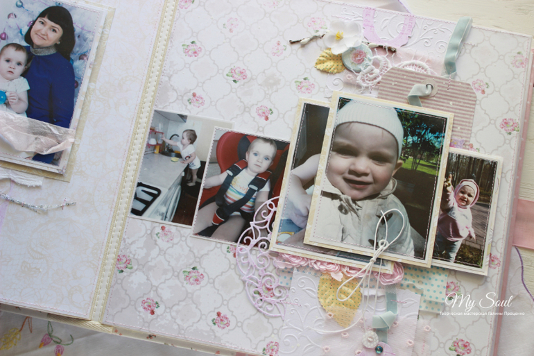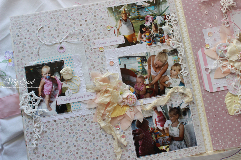 Альбом посвящен первому и второму году жизни маленькой Алисы. Формат 30*30 см, 6 разворотов, 12 страниц. Коллекции бумаги от и чудесным образом дополнили друг друга.